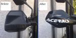 The handguards are quite easy just buy the Uniko Enduro Hand Guards of ebay the way to attach them is on the left hand side move the light switches bit over a tad to the right, and on the right hand side move the kill switch button a tad over to the left, so the hand guard screw bits both screw on right next to the end of the hand grips,