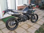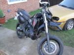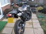 Well, i still havnt managed to get my mirrors on as they dont fit. :O so guess i just wont be using mirrors. :/ had lil accident today. Car stopped as it came off a round a-bout, i followed and it just stopped dead infront of me, i put the breaks on and my front wheel locked and went from under me. wasnt going too quick so was ok, meesed my knee's up just a tad. but theyll be ok in a few days. all in all, ok. handguard is loose and the forks are a very minorly twisted but nothing an allen key wont sort. :) no cosmetic damge though. :) bloody car drivers dont understand eh...