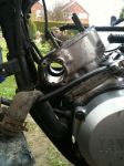 2) Next is the screw on bottle on the side, all you need to do is remove the bottle, and block the hole. Very easily done with a square of duct tape, make sure it folds over the edges on the bottle, you don't really want it being sucked through the carb! All you need to do then is push the bottle back on, and screw it back on to the frame.