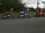 a mates 50 on the left my dt in the middle and a cagiva on the right at a little stop of on a cruize
