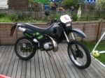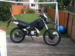 Imo, i'd keep her all black get a sumo setup, tail tidy, remove grab rail, get a hpires, cut it down and finish it with a nice full monster energy graphics kit to tickle your fancy and a supermoto front muddy, but that's my preference ofcourse