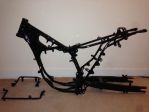 so took the day off, fitted all new bearings, bushes and seals, fitted swing arm and rear suspension. Also found time to hang the harness from the frame. recleaned the top yoke and started to clean the bottom yoke ready for refiting tomorrow. heres my current progress.......