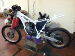 Finally 2K,d the frame subframe and rear footpeg hangers White for this today so looks like its staying White/Red. If I didn't have a DT125LC MK1 and DT175MX tank that needed doing White it would still be stuck in the corner. Might get it half put back together one day this week.