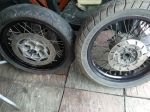 Aye Mart I managed to get a Nyloc nut behind the caliper mounting on the fork, but then again my bracket was only 6mm not 10mm, so I had a tad more room, as for the spacer, I used a m10 hex thread coupler halved, worked out about 15mm for each spacer, nice job you're doing there though, oh aye I had another front spindle made adding 13mm to the length of the shank, as there wasn't enough thread coming through the left hand fork. but like you say I went TDR front end. The problem I'm having at the minute is getting new wheel bearings for the 3 spoked wheels on my hybrid project, as the original bearing had a 12mm centre, now I need to find some bearings to take a 15mm spindle, so as to keep the DTR forks, I had thought they were TZR 3 spoked wheels, but the TZR speedo drive takes a 15mm spindle not a 12mm one, so must be off another type of Yamaha, but they're definitely Yamaha wheels.