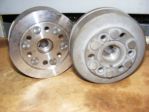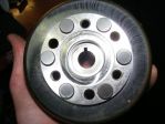 Cheers AndyYam il kepp checking my plug, im going to put the needle clip up one position aswell for abit more peace of mind. Was well capped this morning went in my cupboard of bits to grab the spare flywheel to take to work and skim down and..... eh? 2 flywheels :) forgot that when i lightened my flywheel for my last bike i did a tester that came loose when machining and dented the ring that holds the magnet onto the inside of the flywheel ever so slieghtly. so i didnt fancy/dare use it on the bikes so bought another and reapeated (without the **** up) it may be fine but didnt want to cahnce it. anyway have both flywheels at work now so i thought id show you all some photos. Forgive the dull sandblasted finish regretted it as soon as i did it lol
