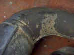 nackered pin went in the bike on a CHEAP ASS rebuild and this is what it has done to the eye of the top end of my conrod, basically beaten the crap out of it. nothing could be done to fix this so I had a new conrod fitted, genuine YAMAHA! :D