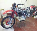 Just waiting for the correct 3MB exhaust to turn up then give it a few coats of barbecue paint, the clutch waterpump and flywheel covers are off now to paint in Rover Gunmetal Grey and the tank needs painting, Audi laser Red is the closest match I can find. Then just the radiator to fit. Waiting on a new chain, headlamp bulb and a new waterpump seal. Might as well fit a new waterpump seal while the casings are off it, then its just oil and coolant and it should fire up touch wood.