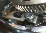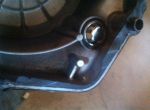 hi was testnig to shift down to 1 whiile i was installing my clutch after kickstart assembly. when i shifted and tried shifting up again it didnt work. the gear selector thing at the clutch side is stuck against the clutch basket thing. anyone got a picture of how to set up gear selector on the drum in first gear?