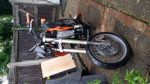 First thing need to get it running. It's got the dellerto carb there instead of the mikuni . Same one as the rs and the mito and I had plenty of problems with them in the past so might give it a miss and try to find a dt carb and put that on. Second thing is the looks. Got a led tail light on the way and a ktm diamond headlight . Going to put a smc front fender on it too. And a 2008 ktm 250 tank arrived today ;) it looks like it might fit with a little play around . And now just need to find some panels and a seat :)